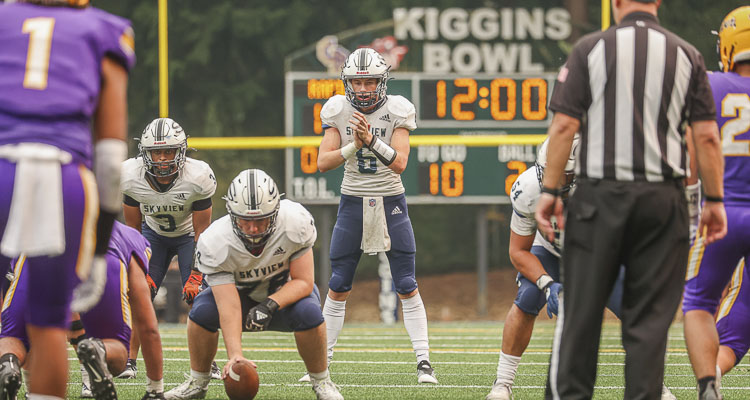 The Storm are riding a five-game win streak after losing the first game of the year to Oregon traditional power Jesuit. That was a three-point loss from a first-year starter on a young team. Skyview has two starting sophomores on the offensive line and the team’s top receiver, Gavin Packer, is a sophomore.