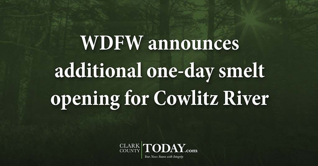 OLYMPIA – The Washington Department of Fish and Wildlife (WDFW) has approved another one-day recreational smelt fishery for Wed., Feb. 26.