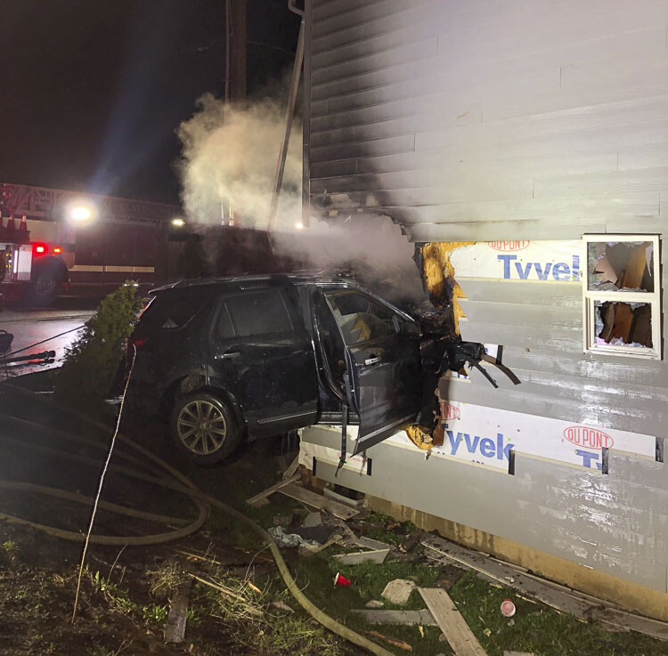 It was reported that a vehicle had collided with a house at the northeast corner of the intersection. Neighbors were immediately reporting that the occupants of the vehicle were fleeing on foot. The vehicle had crashed through the kitchen area of the home and started a fire.