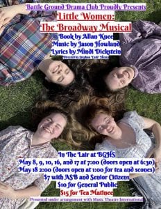 BATTLE GROUND — Battle Ground High School Drama is set to perform the timeless classic “Little Women” beginning May 8. Presented by arrangement with Music Theatre International, this story of family and love is brought to life in with musical numbers about personal discovery, heartache and hope.
