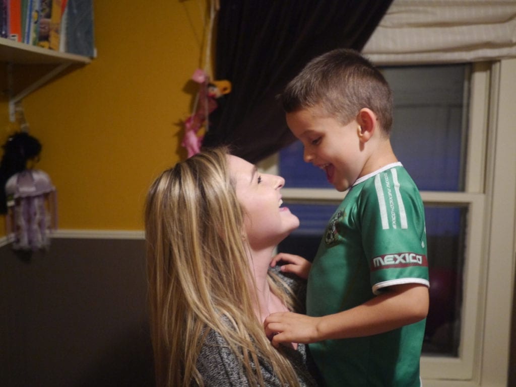 “We were being a rocket ship, flying around the room, with him on my shoulders,’’ she said. “Just on and on. I’m sweating. He’s laughing. For 15 minutes, laughing the whole time.”
