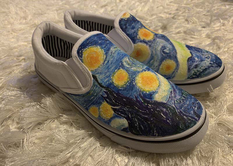 So she painted The Starry Night by Vincent van Gogh on those shoes.