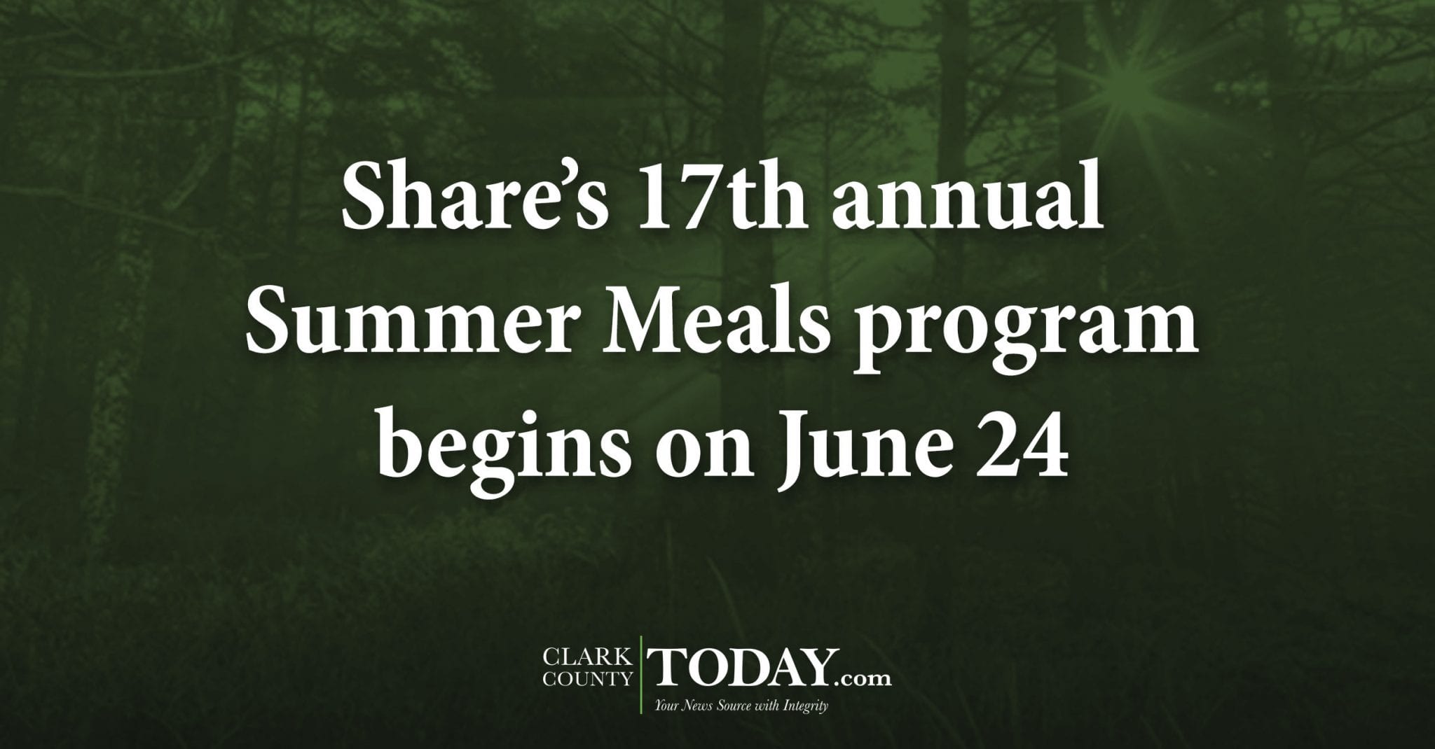 VANCOUVER — From June 24 to August 9, Share’s Summer Meals program will provide free meals for hundreds of children at 20 locations throughout Clark County.