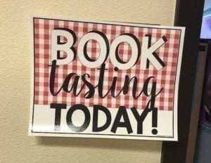 “There’s a difference between tasting and eating,” Hall said. “So you’re just getting a taste. And the tasting consists of first, look at all the books. Talk with each other about what you’re seeing, what looks good to you. Then settle in on a book to taste. Read about three pages of the book and take notes about your reaction.”
