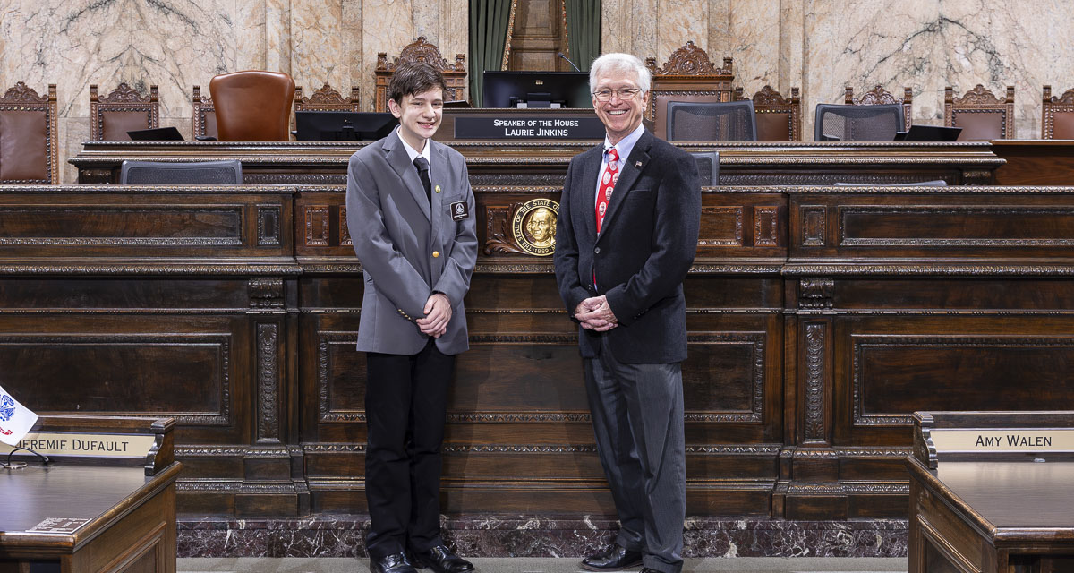 Jackson Bumala, a middle school student from Vancouver, recently joined Rep. John Ley at the state Capitol in Olympia to serve as a page in the Washington State House of Representatives