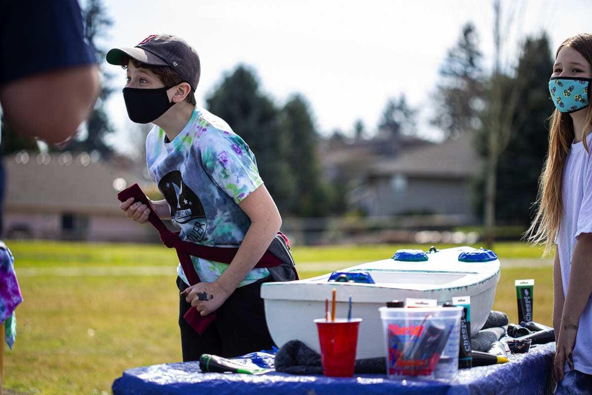 “So it’s been really neat, because we have this beautiful outdoor space that we have outside my classroom, and we set up tents if it’s raining, but kids are able to work outside and work in small groups,” Kirkendall said. “We’ve been able to keep all the safety protocols going and make progress as a small group. Only half of [the students] come on Monday, Tuesdays, and half of them Thursday, Friday. Then on Wednesdays, it’s been our Mini Boat day.”
