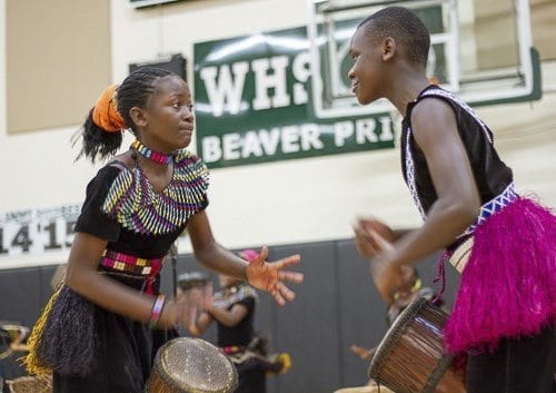 WOODLAND — Woodland High School students and staff learned about Ugandan culture and the challenges facing the students and people of Africa during a school visit by the I Am Family African Choir on Wed., Oct. 18.