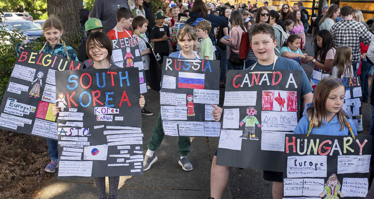 Third grade classes from around Vancouver Public Schools marched through the Fort Vancouver National Historic Site for the annual Children’s Cultural Parade. For the first time, every third grade class had the option to participate in the parade this year.