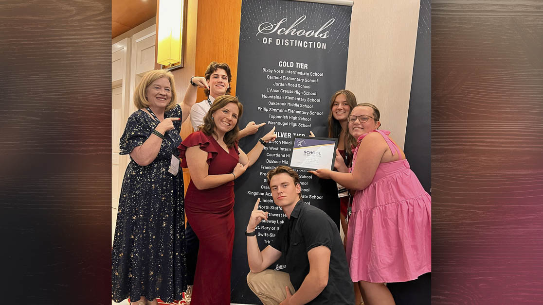 Riley Vaughan, Jude Maddox, Gavin Johnson, Mackenzie Olkowski, and WHS teachers Kyla Ritchey and Tami Grant accepted the award at the Jostens Renaissance Global Conference in Orlando, Florida on July 18