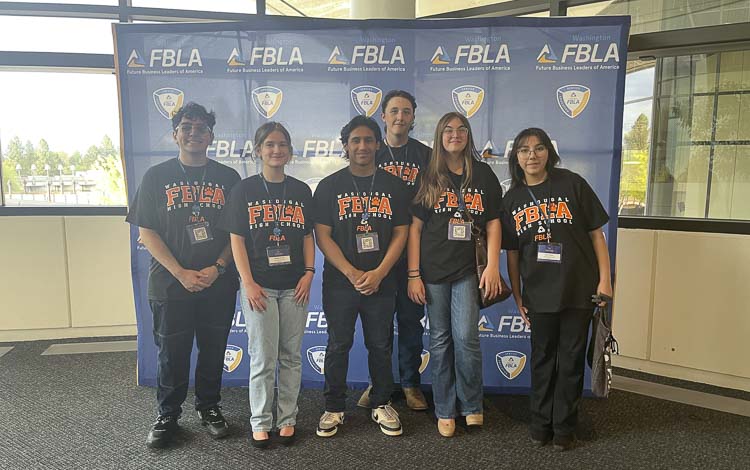 Students Liberty Andelman and Jacob Larzalere secured places in the top 12 of Intro to Social Media Strategies and Intro to Public Speaking competitions, respectively. On April 27, Larzalere took 9th place at state in the Intro to Public Speaking competition category. Carter Wilson, Larzalere, Andelman, Madeline Brock, Xavier Pineda-Gutierrez, and Laura Perez qualified for state competitions based on their performance at the Southwest Washington Regional FBLA Conference in early February.