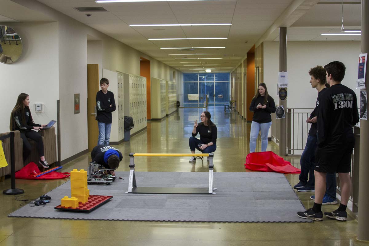 Once the team divides itself into the three groups – builders, programmers, and project managers – they start each season by brainstorming ideas for the robot and drafting starting designs using the specifications provided by the FIRST League’s organizers. Communication and teamwork between each of the three groups leads to the success of the team as a whole. “While it can be hard to get everyone to agree, everyone’s really supportive of one another,” said Adelia Menn, a junior who’s been involved in Woodland Public Schools’ robotics programs since the eighth grade. “I think it’s nice how everyone has different strengths and weaknesses and we work as a team to help one another out.”