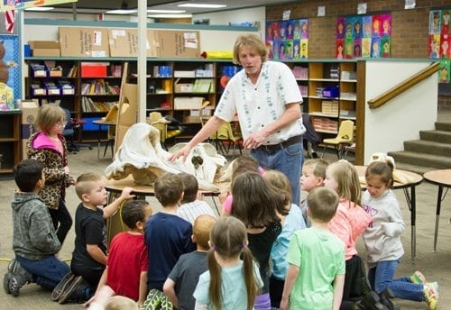 The staff at Woodland Primary School also uses engaging events to enhance course curriculum and improve student learning. John L. Ford, a marine biologist and whale researcher, makes annual visits to the primary school to teach students about whale biology and marine life. This April marked 33 years of his visits. He brings bones, fossils, models, and a life-size inflatable whale for students to see and touch as part of his presentations.